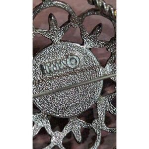 Sarah Coventry Red Cabochon Vintage Brooch Pendant Ornate Filigree Square Design