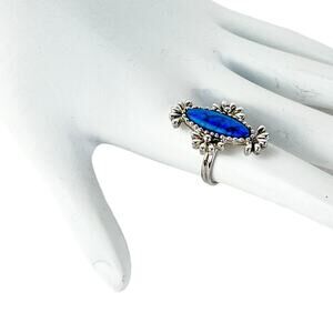 Sarah Coventry Ring Blue Cloud Oval Faux Turquoise Silvertone Adjustable 1977