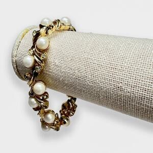 Sarah Coventry Royal Ballet Bracelet Rhinestones Faux Pearl Gold Tone Links Vtg