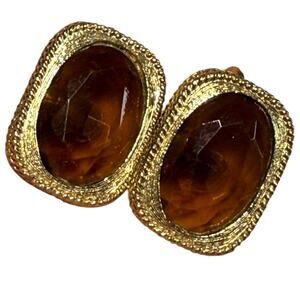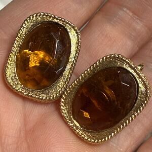 Sarah Coventry Signed Amber Rhinestone Gold Tone Clip On Earrings Vintage .75"