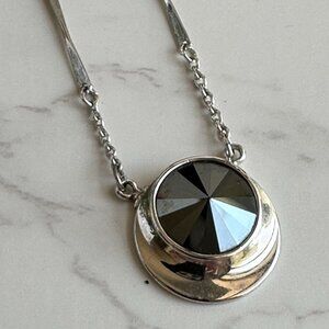 Sarah Coventry Silver Tone Necklace with Faceted Hematite Pendant Modernist Desi