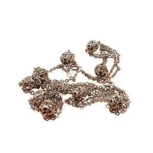 Sarah Coventry Silver-Tone Long Chain Double Strand Necklace with Filigree Ball