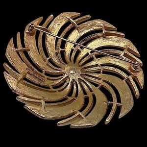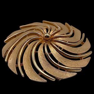 Sarah Coventry Swirl Pinwheel Brooch Pin Brushed Gold LARGE Vintage MCM Mod Dome