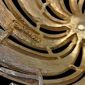 Sarah Coventry Swirl Pinwheel Brooch Pin Brushed Gold LARGE Vintage MCM Mod Dome. Condition is pre-owned and vintage 1960s to 1970s. Large at 3". No chips or cracks. VERY MILD surface wear. Stamped Sarah Coventry on the back. Please see all photos for detailed condition.