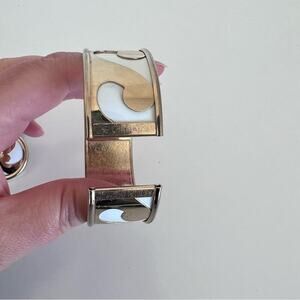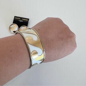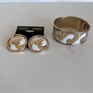 Sarah Coventry Vintage Bracelet and Earrings Sea Scroll Gold White Wave