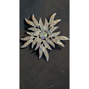 Sarah Coventry Vintage Rhinestone Starburst Pin Brooch Silver Aurora Borealis S