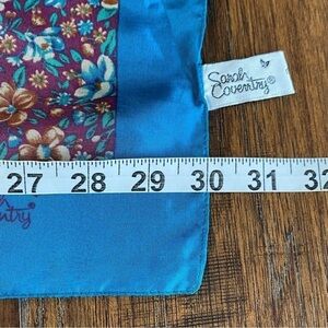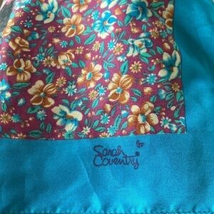 Gorgeous floral scarf in teal, purple and brown. Made in Italy.