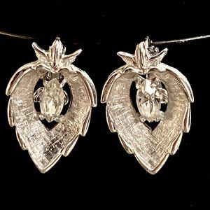Sarah Coventry silver leaf rhinestone vintage necklace and earrings demi parure, vintage.