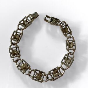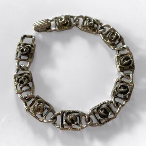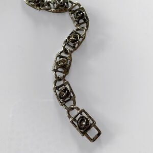Sarah Coventry Metal Link Rose Bracelet in silver tone. Signed. Has fold over clasp for closure.