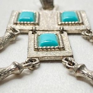 Sarah Covington Pendant Square Silver Tone Green Stone Plates With Tassels