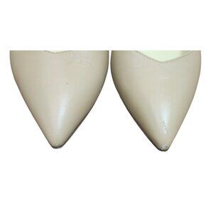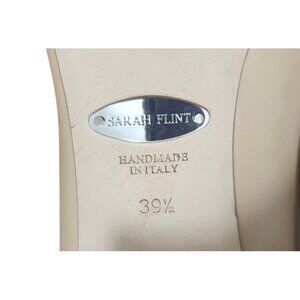 Sarah Flint Beige Leather Block Heel Pumps 39.5 Tortoise Heel Pointed Toe Italy