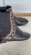 Retail $650 in good condition hand made color block. Black leather /taupe leather trim with side stretch panel. No box