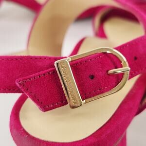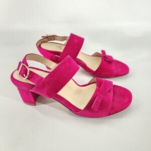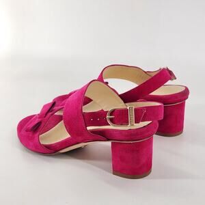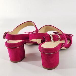 Sarah Flint Nadia Suede Bow Slingback Block Heels Strappy Sandals EU34.5 Fuchsia