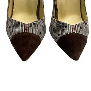 Sarah Flint Perfect Pump 100 Espresso Glen Check Plaid Suede Heels 39.5 (8.5 US)