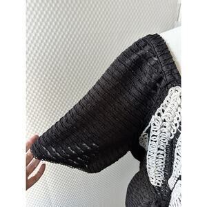 Sarah Hann x Anthropologie Flutter-Sleeve Crochet Black Babydoll Blouse 2x Plus