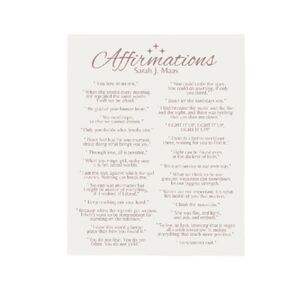 New. Sarah J Mass A Court of Thrones and Roses affirmations print. 8x10”. This listing is for the print alone, unframed. *Reasonable* offers welcome.