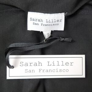 Made in the USA, The Lola Dress is by San Francisco designer Sarah Liller. Described as "comfortable clothes for sophisticated women" this black long sleeve dress has a deep v-neckline and elastic waistband. Classic style. New with brand tags and in size Small.