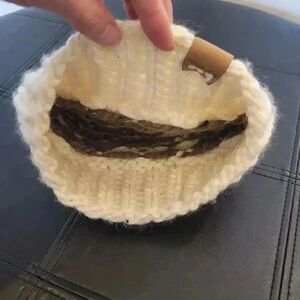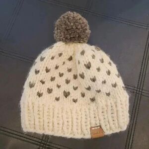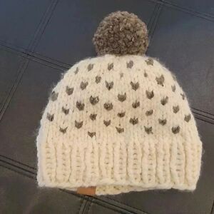 Sarah Liz Women’s Cream/Gray Knit Beanie w Pom-Pom and Logo Patch EUC sz OS
