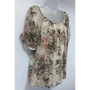 Sarah Michelle Top Womens Large Size Cream Floral Artsy Flowy Boho Y2K