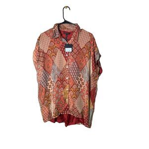 Sarah Pacini Brick Viscose Patchwork Blouse Size XS NWT. Buttons down the front. Oversized