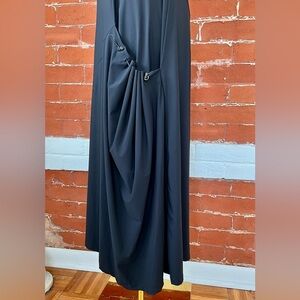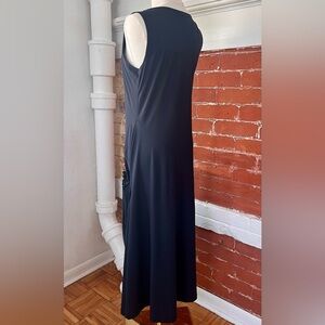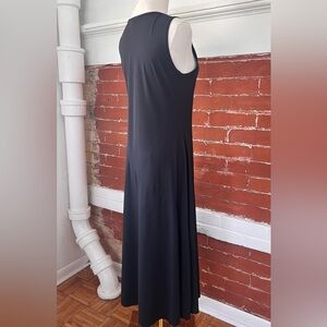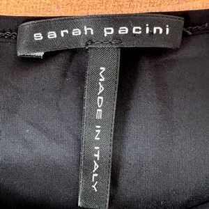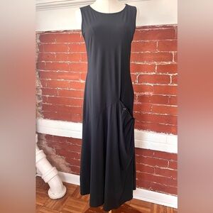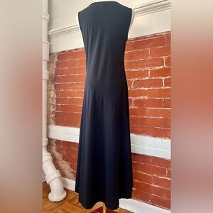 Sarah Pacini Midi Dress Techno Fabric Black Sleeveless Bias Cut Stretch Modern