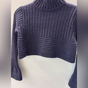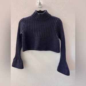 Sarah Pacini Ribbed Indigo Cropped Knit Sweater OS