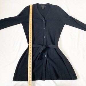 Sarah Spencer black button front tie waist tunic length 100% italian merino wool cardigan sweater