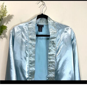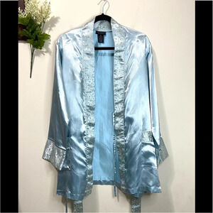 Large , Satin Blue Asian Inspired Embroidered Robe With Belt Gorgeous, excellent condition!
