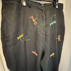 Sarah Spencer18W Black 100% Linen Pants | Embroidered Dragonflies | Plus | Good