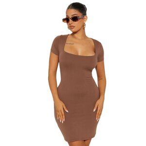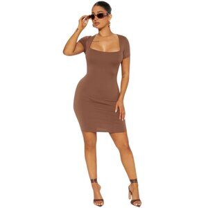 Sarah Square Neck Mini Dress Chestnut Brown Women's