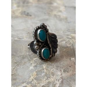 Sarah Watson *signed* Turquoise Sterling Silver Navajo Ring Size 4.5.