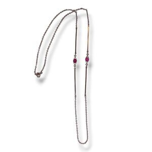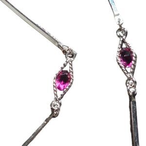 Design & Craftsmanship: The necklace features delicate silver-tone chains, punctuated with beautifully set pink gemstone accents. These vibrant pink stones offer a touch of warmth and color, creating a striking contrast against the cool silver.