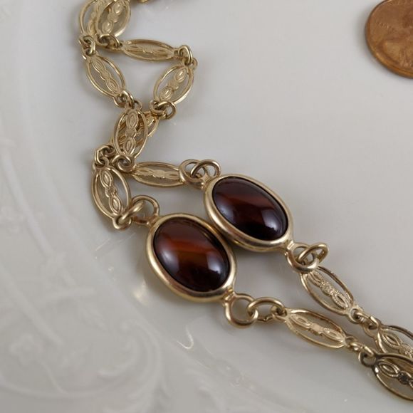 Sarah Coventry Gold Tone Tiger's Eye Necklace