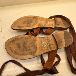 Chic leather sandals with ankle tie. Stylish and comfortable for any outing.