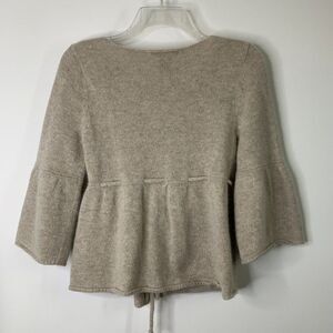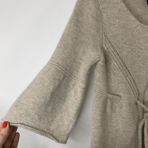 Sarah Spencer Lambswool Cardigan Sweater P M Oat Beige Bell Sleeve Tie Button