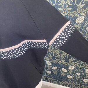 Sarahs Day collab White Fox Active All I Do Is Brunch Blackout loungewear top. This thick black crewneck sweatshirt feature a gold chevron motif with a white spotted print detail.