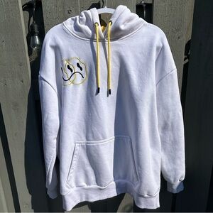 Sarai Baggy White Sweatshirt with Yellow Hood Lining Colorful Text Size XXL