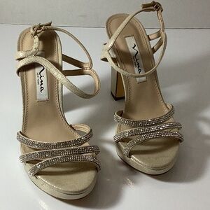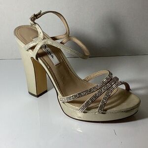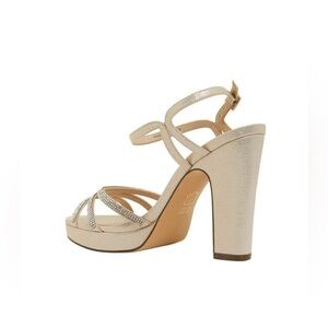 Saralyn Metallic Rhinestone Ankle Strap Platform Block Heel Sandals