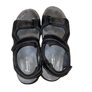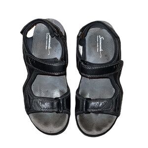 Saramanda Black Leather Comfort Sandals Size 8 W