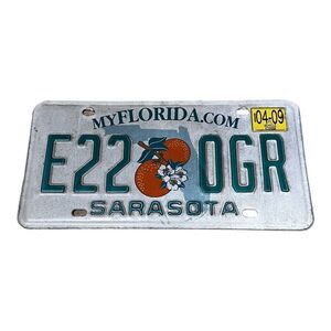 Sarasota Florida 2019 Collectible License Plate E22 OGR Original Tag Orange