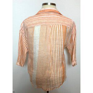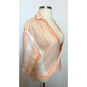 Saratoria Saracena Orange & White Striped 100% Linen wrap Blouse Size M/L
