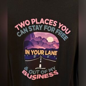 Graphic says “ two places you can stay for free. In your lane and out of my business.