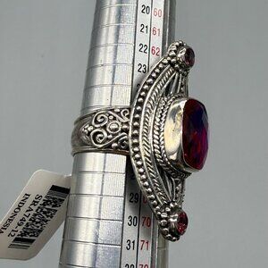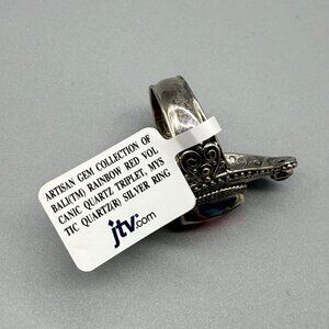 Sarda Artisan Gem Rainbow Red & Mystic Quartz Triplet Sterling Silver Ring Size