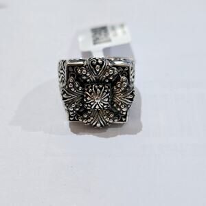 Sarda Bali Sterling Silver 925 Floral Scroll Cross Square Ring Size 10 NWT
