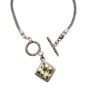This lovely bracelet by Sarda features a yellow stone (12.04 mm x 9.66 mm) charm on a braided 8 in. chain with a toggle clasp in sterling silver.