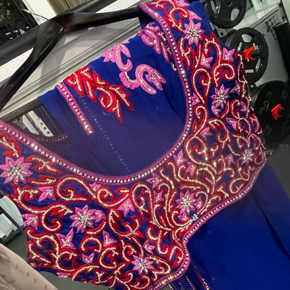 Beautiful saree full of work on back very beautiful worn a few times as you can see in pics reference I am a size 34 C