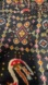 Beautiful women’s saree blouse with elbow-length sleeves with a ruffled hem. It is a black, multi-colored with birds and a deep back and a tie-up closure at the top. The pattern has a bit of gold thread and adds shimmer!
