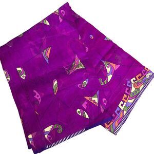 Saree Sari Scarf Material Purple Fuchsia Pink Georgette Sheer Geometric