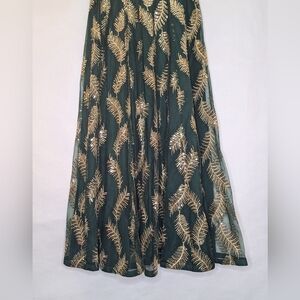 The Saree Room Skirt Wrap Large Sari Lehenga Green Gold Feather Embroidery Maxi