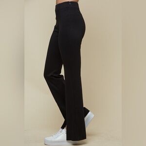 Our So Slit pants feature a flared bottom with a slit detail.